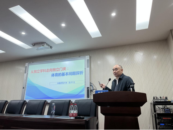 陆作生教授从体育的基本问题出发,明晰二元摇摆的体育对象、探求体育目的内容真谛、矫正错配的体育内容和体育手段、“运动”增值赋予体育新内涵、体育脱胎于教育应在文化层面走向独立,论证了体育应从独立学科走向独立门类。报告主题鲜明、内容丰富、逻辑清晰、语言风趣、分析问题深入,对学科发展给予新颖见解。